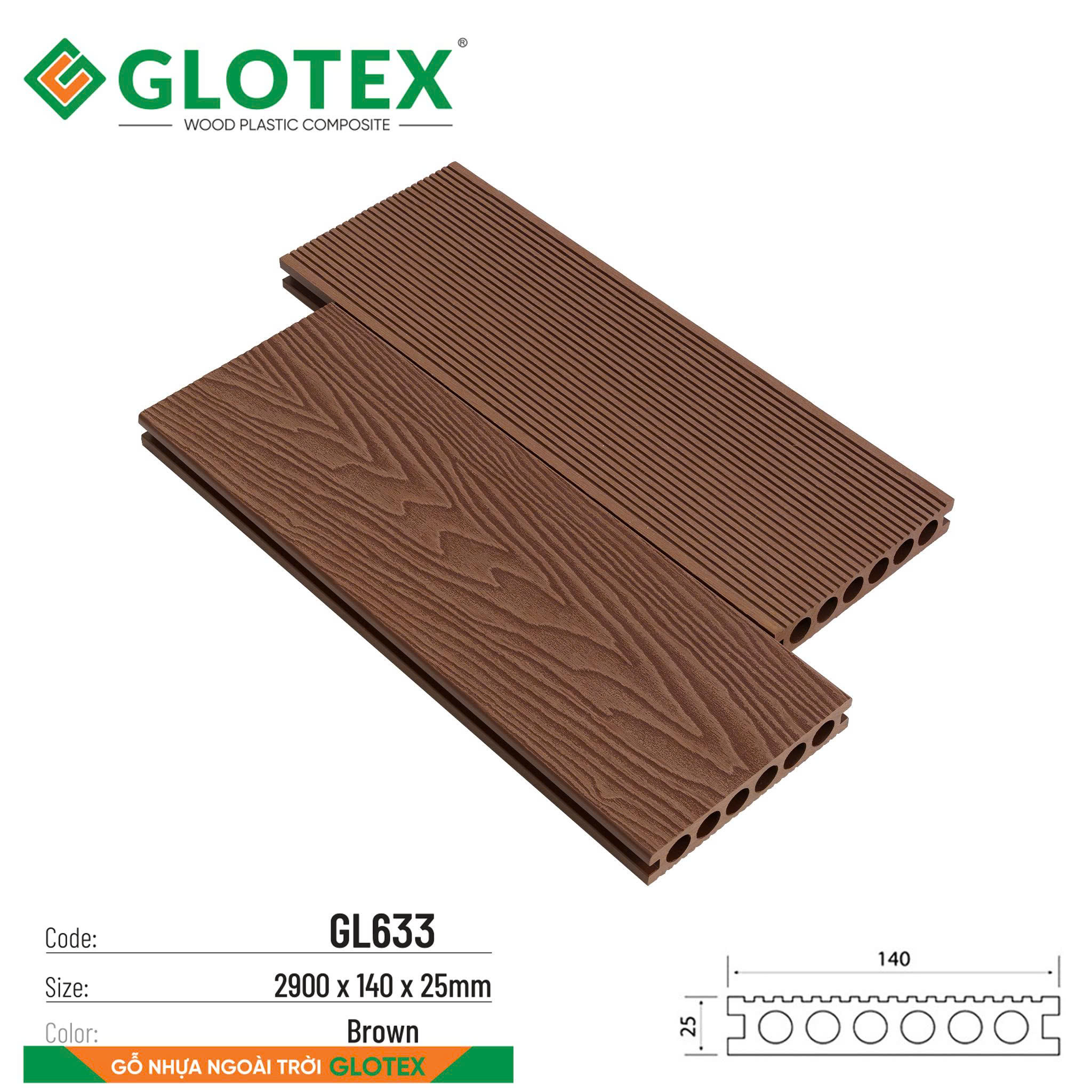 Glotex GL633 BROWN 6 LỖ TRÒN